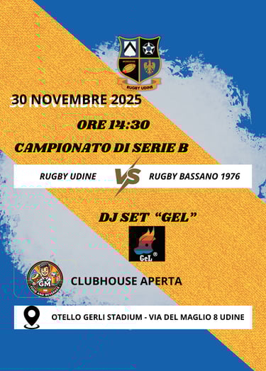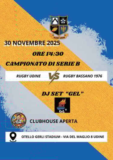 🏉 Match Day – 30 Novembre, ore 14:30 All’Otello Gerli Stadium va in scena il big match di Serie B: RUGBY UDINE vs Rugby Bassano 1976 🍻 Clubhouse aperta pre e post match con GM FOOD 🎶 DJ set “GeL” pre e post match 📍 Via del Maglio 8, Udine 👉 Non perderti l’evento: vieni a tifare dal vivo!